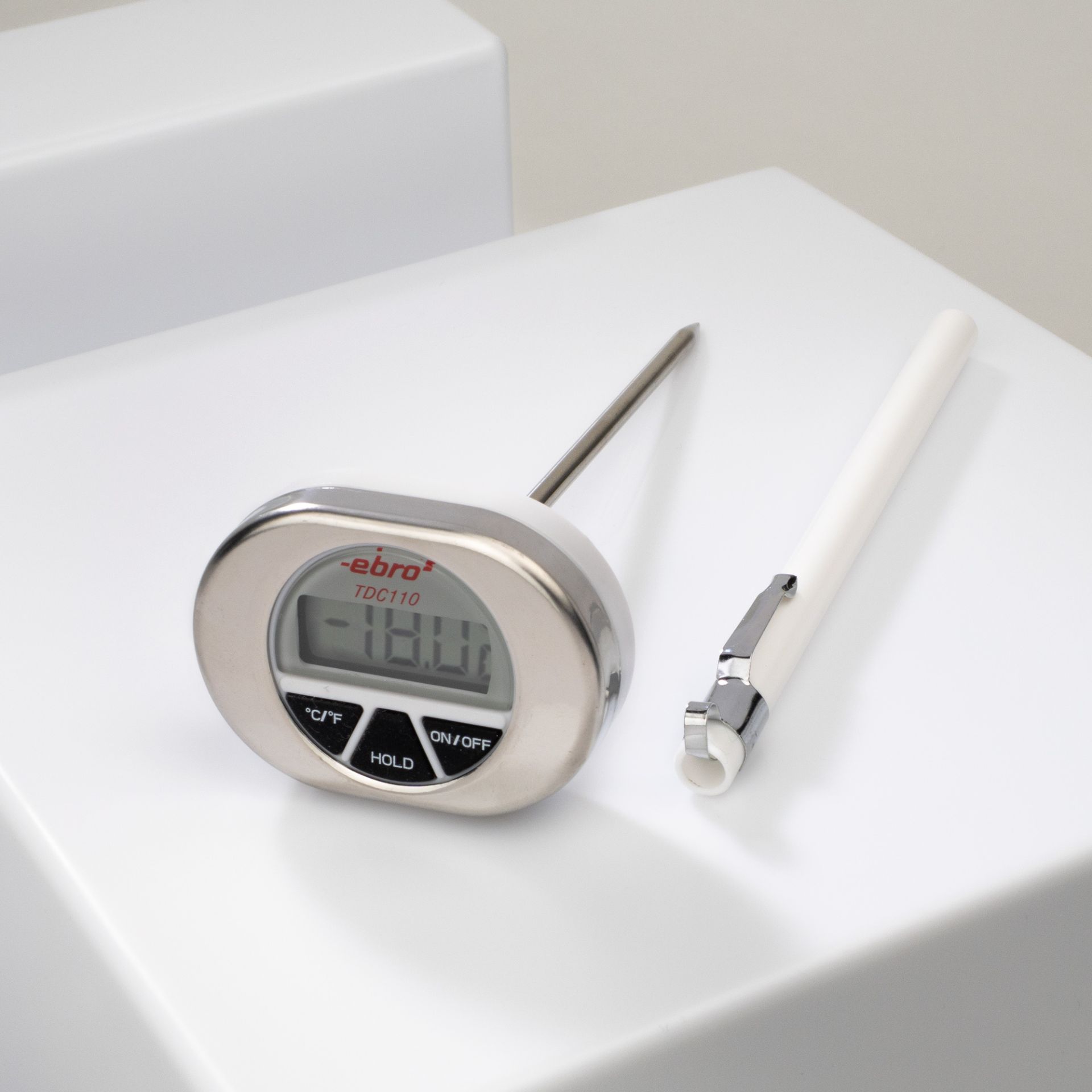 The ebro TTX 120 is an ultra-compact and exceptionally lightweight digital core thermometer designed for quick spot-checks in the food industry and kitchen environments. Its minimalist design makes it a highly portable and efficient tool for basic temperature monitoring of semi-solid goods.