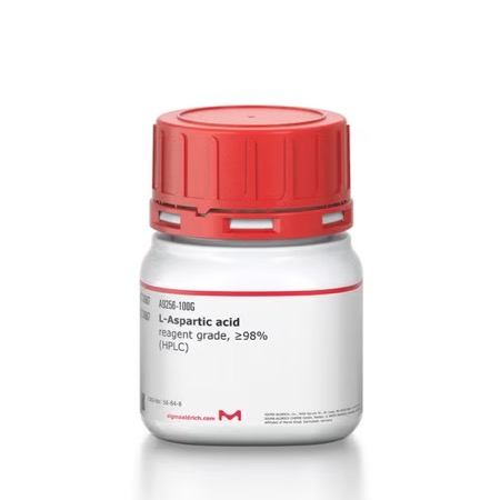 L-Aspartic Acid, catalogue No. A9256, is a reagent-grade amino acid supplied by MilliporeSigma / Sigma-Aldrich with an assay of ≥98% (HPLC). Also known as (S)-amino-3-carboxypropanoic acid, this compound is provided as a white to off-white crystalline powder. L-Aspartic acid is a non-essential amino acid that participates in metabolic pathways and is used in biochemical research, buffer and media formulations, cell biology studies, and as a building block in protein and peptide chemistry. It dissolves in aqueous solutions and integrates into media and buffer systems as required by experimental protocols.